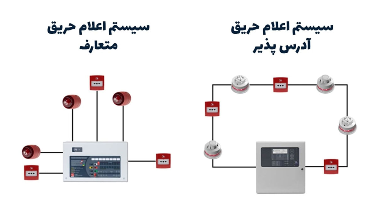 جدول مقایسه کامل سیستم اعلام حریق آدرس پذیر و متعارف